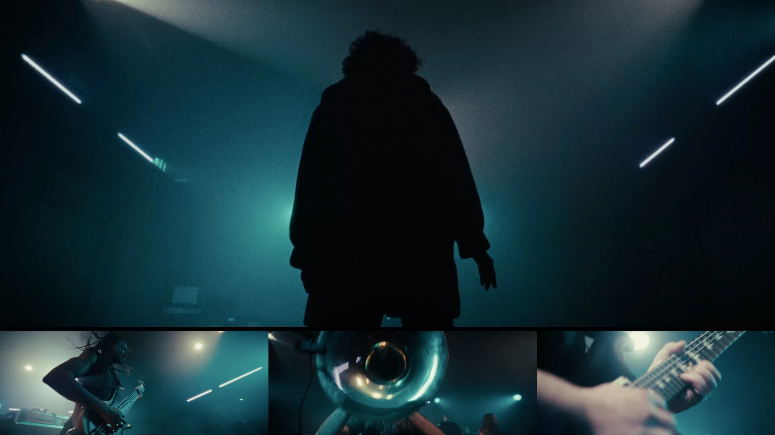Directed by Kamir Meridja / Production - COUAC Production & Antre du Drac / DOP - Sam Meridja / Operators - Sam Meridja, Clément Pelzer, Charles Devoyer / Light design - Théo Roumier / Live-sound engineer - Laura Escande / Electricians - Allan Colin, Berline / Recording - Studio MIDILIVE by Timothée Gumy / Mixing - Perceval Carré / Mastering - Benjamin Savignoni / Dancer - Andréa Vibert / Editor - Clément Pelzer / Color grading - Hugo Bachelet / Brass, Larsens - Ludovic Schmidt / Saxophones - Hugo Collin / Guitar - Cédric Laval / Keys- Sylvain Rey / Bass - Lunel Gabon / Drums- Romain Choisy